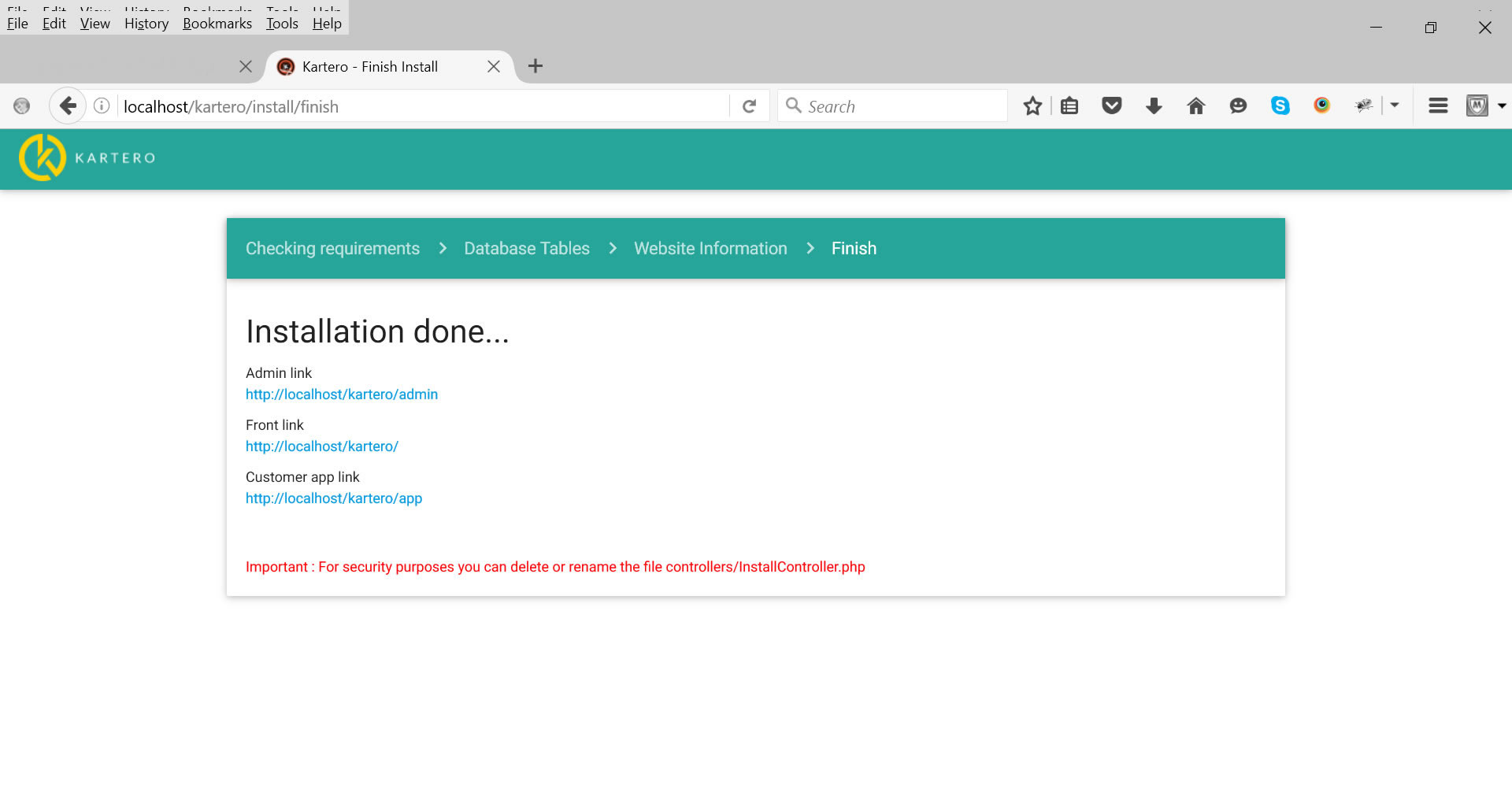 4. Finish, you can access by now the admin panel, front end and customer panel website